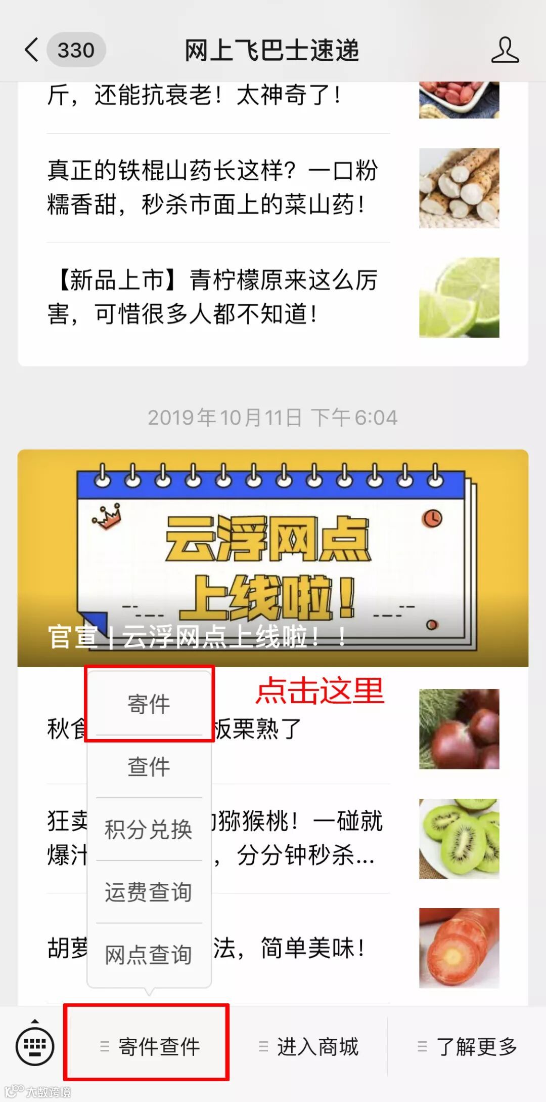 关注并进入“网上飞巴士速递”微信公众号