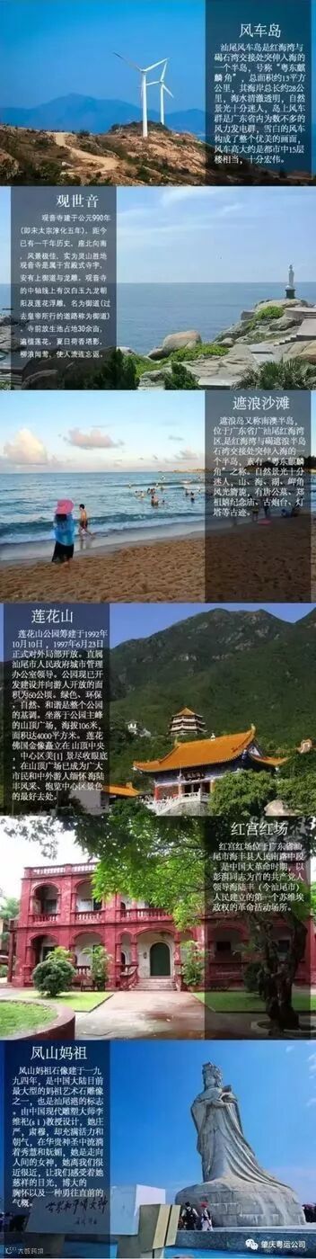 D1:早上06:50广宁粤运汽车站集中出发,前往美丽汕尾。午餐在红海湾海啄湾餐厅尽享美味的海鲜餐,午餐后乘坐旅游大巴前往红海湾,我们称之为东方“爱琴海”,游览【南海观世音】,进入亚太地区帆板锦标赛训练基地、九运会海上赛场、亚运会帆板赛场【红海湾遮浪南澳半岛】,半岛将海一分为二,一边白浪滔天,一边水平如镜,堪称奇景。可于国家级天然浴场畅泳,于在海边冲浪、戏水、打沙滩排球等,在如此洁净的世界,无论是惊奇的极目四望,观赏一滩具东动西静两景的奇观,还是在海滩冲浪戏水,自由享受阳光沙滩,都能带给你不一样的感受(遮浪沙滩自由活动)。自由活动后集合乘车返回市区入住酒店,晚餐安排在酒店附近。