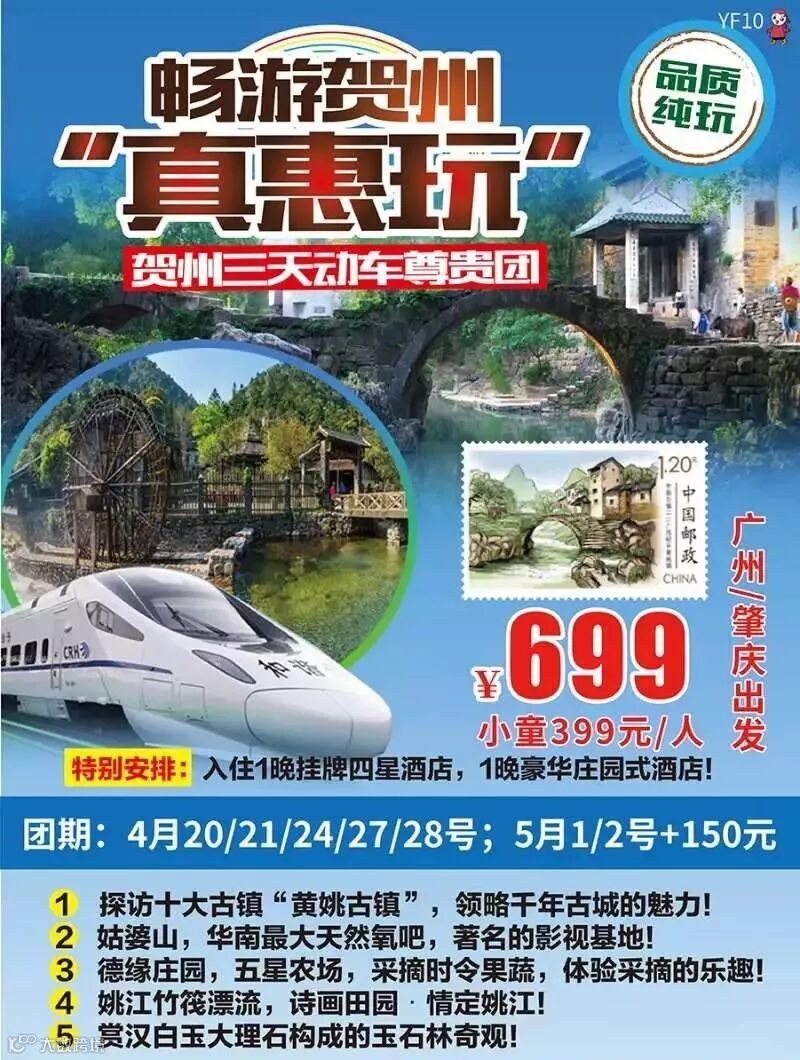 交通:往返出发地/贺州出发地动车票(具体车次以旅行社在出团前一天通知的进