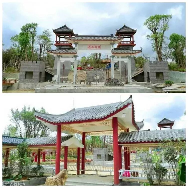 ◆贺州展园的规划主题为"山水环抱,梦境黄姚",并取名贺寿园。从黄姚古镇里的门楼、古戏台等有形建筑中发掘设计元素,将其融入到贺州市展园的设计当中。