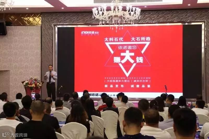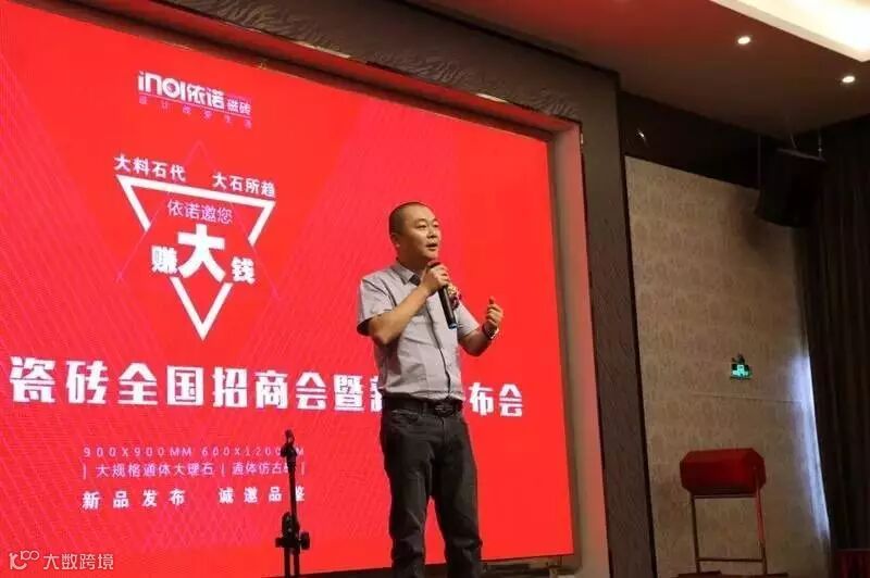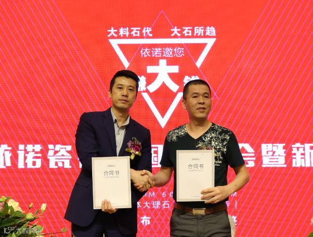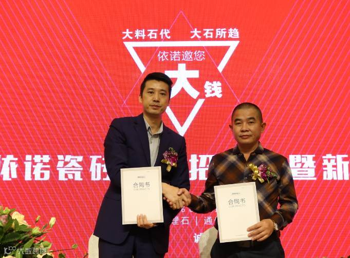 2016年10月19日,主题为“依诺邀您赚大钱”的2016依诺瓷砖招商会暨新品发布会在佛山隆重举办。据悉,今日现场新签约客户56名;陶博会2天,共新增签约客户89名,在陶瓷行业,单品牌签约数量中名列前茅。