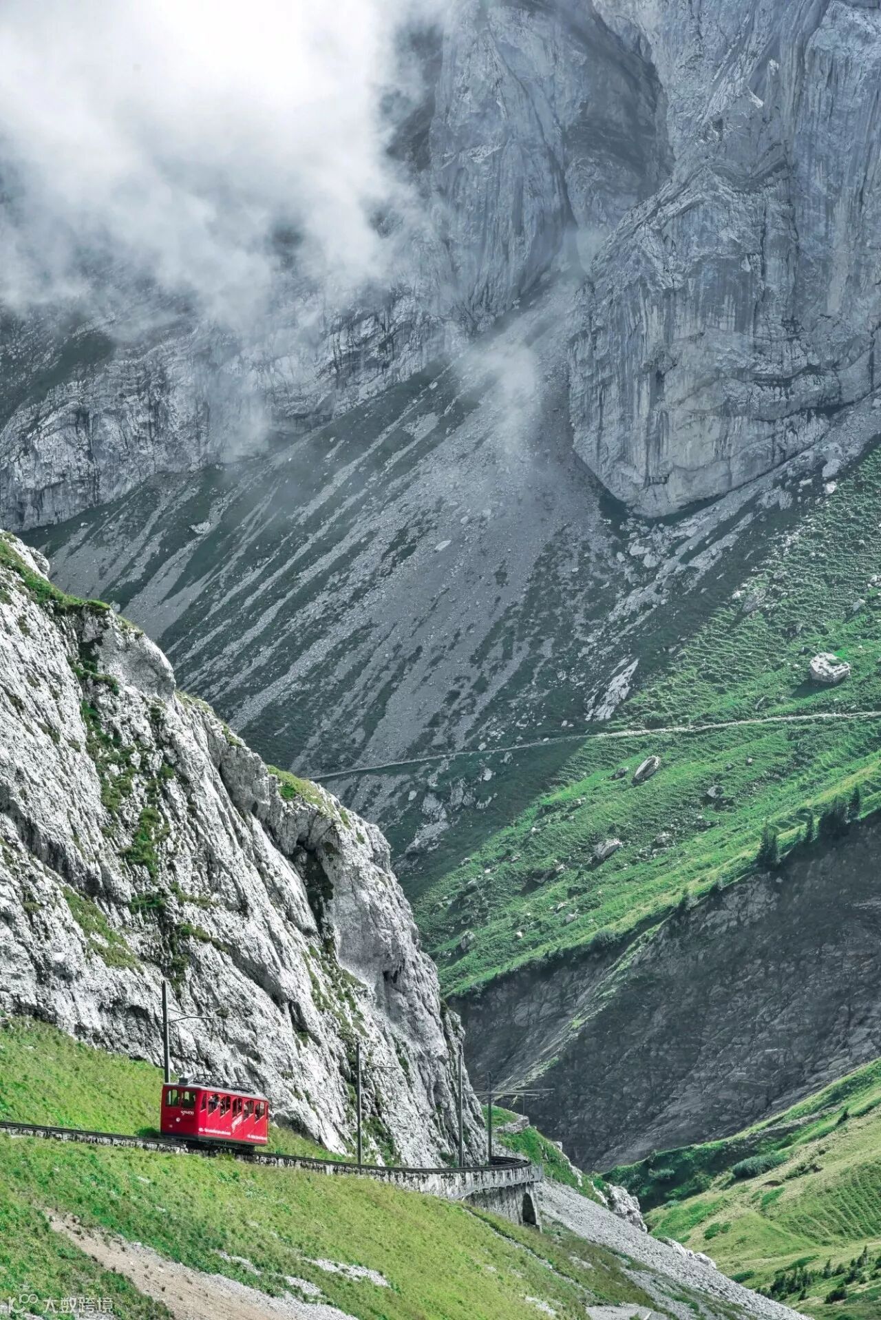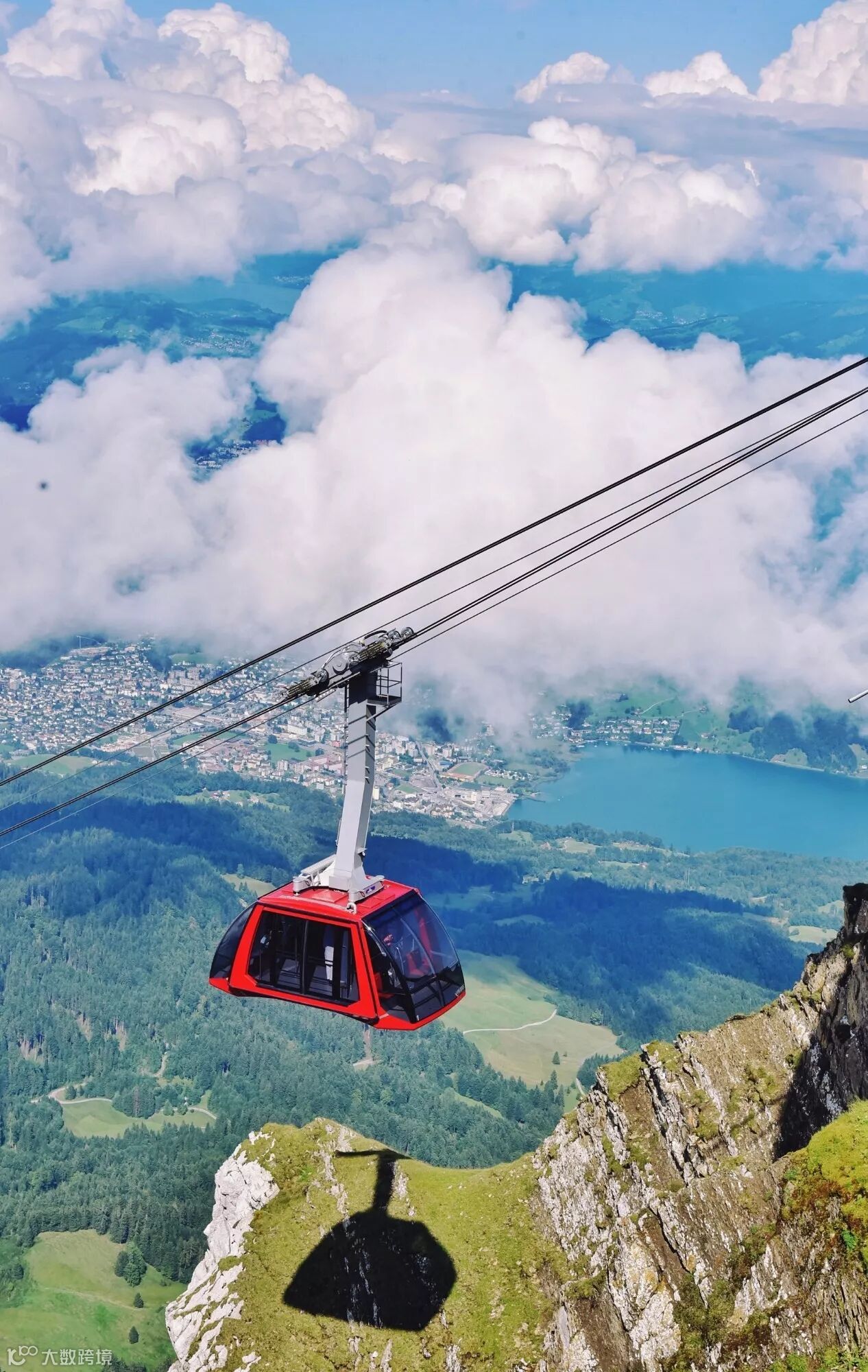 从乘坐的缆车之后弥漫而来