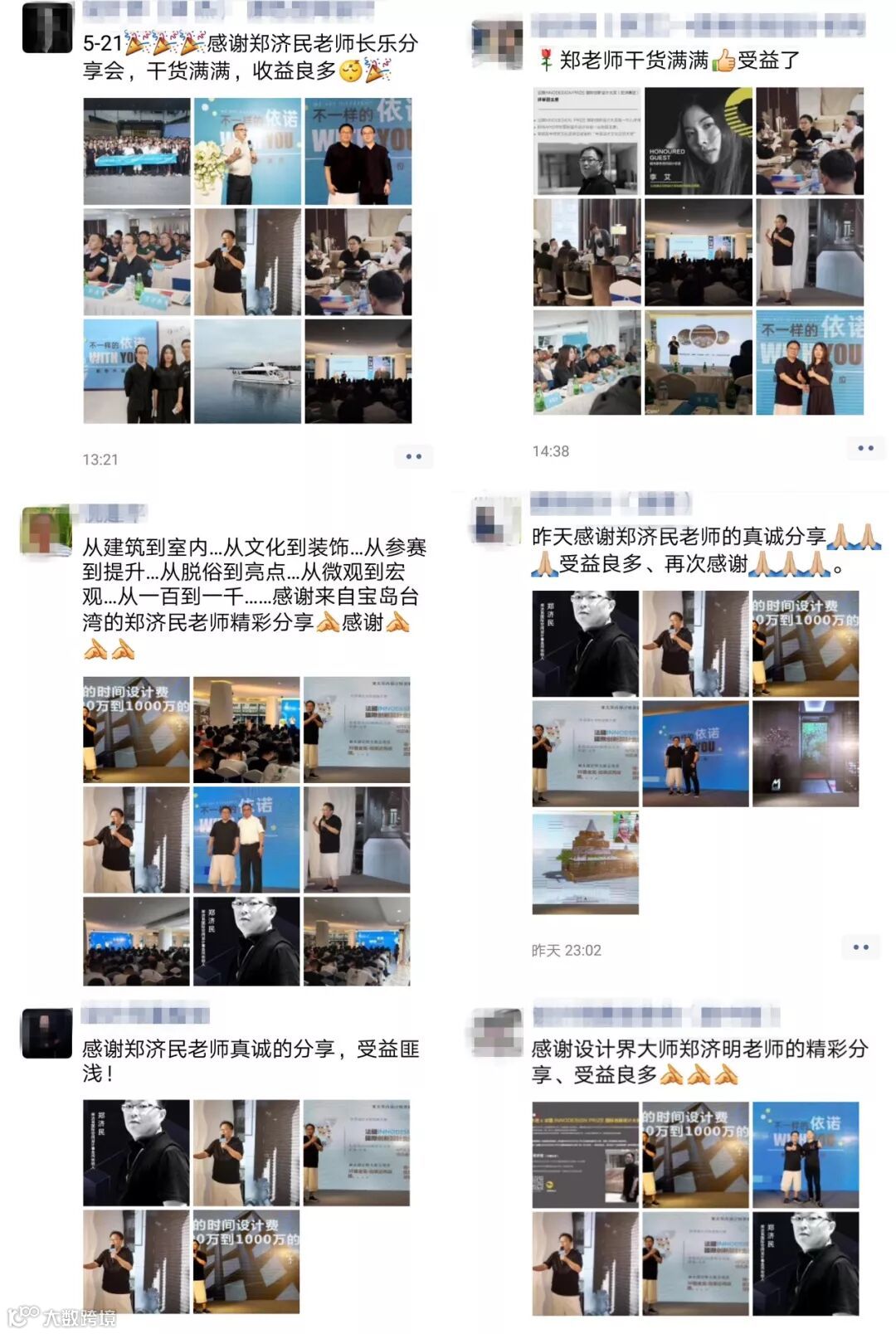 郑老师被誉为“设计界大奖收割机”,他用自身丰富经历分享成长与感悟,讲述怎样实现设计费从100万/年到1000万/年的飞跃,并以敦煌河西走廊文化大酒店、中国古占瑶民宿等案例进行深入解剖,解读设计师如何升级自身咖位的诸多干货。他坦言,曾因获得法国设计大赛金奖收益良多,肯定了参加国际大赛对设计师提升咖位的必要性。