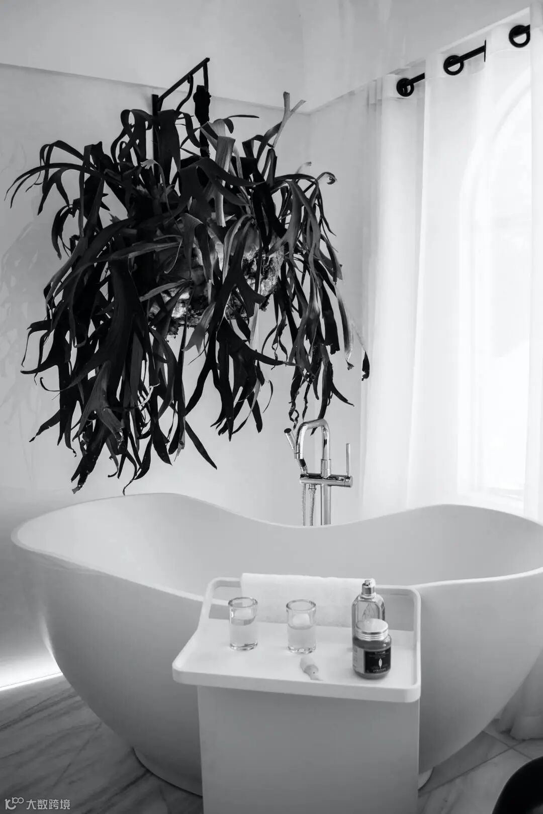 黑色,突出整个空间无垠的美,通过曲线和半圆弧元素,柔和原本结构上的硬朗,让人在方框中挣脱束缚感。