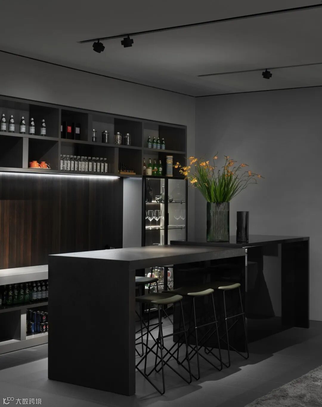 传递家的温暖,只得安心与慵懒,Lucasveron从空间氛围的角度进行设计实践与思考,以灰色、黑色的冷色调家具为首选,以鲜明饱和度作为跳色进行空间点缀,为空间带来轻盈感。