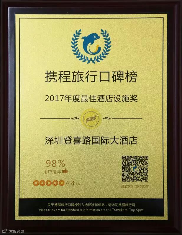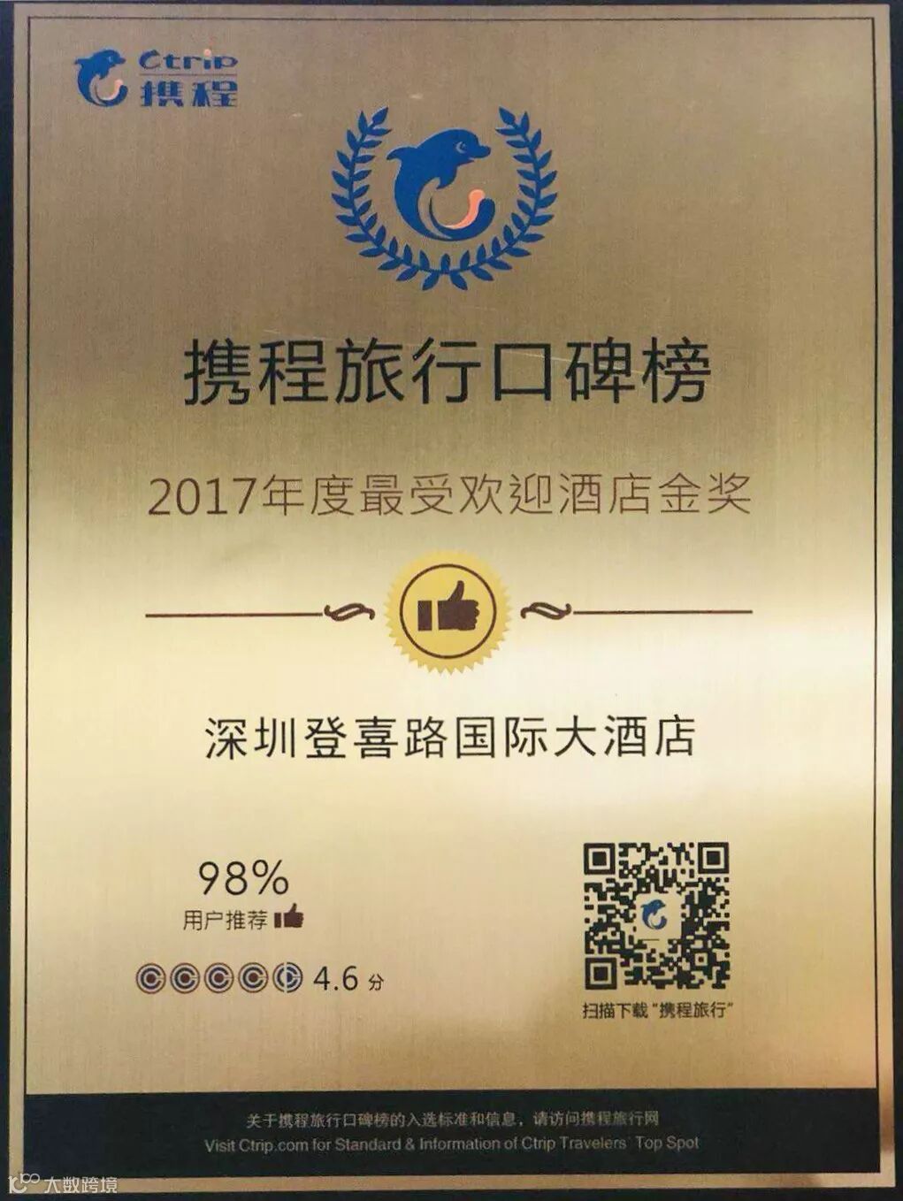 登喜路国际大酒店荣膺携程旅行口碑榜“2017年度最佳酒店设施奖”、“2017年度最受欢迎酒店金奖”