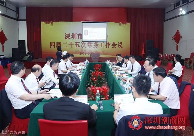 2018年6月25日下午,深圳市潮汕商会四届二十五次常务工作会议在麒麟山庄金晋集团“深圳市潮汕商会活动基地”召开。