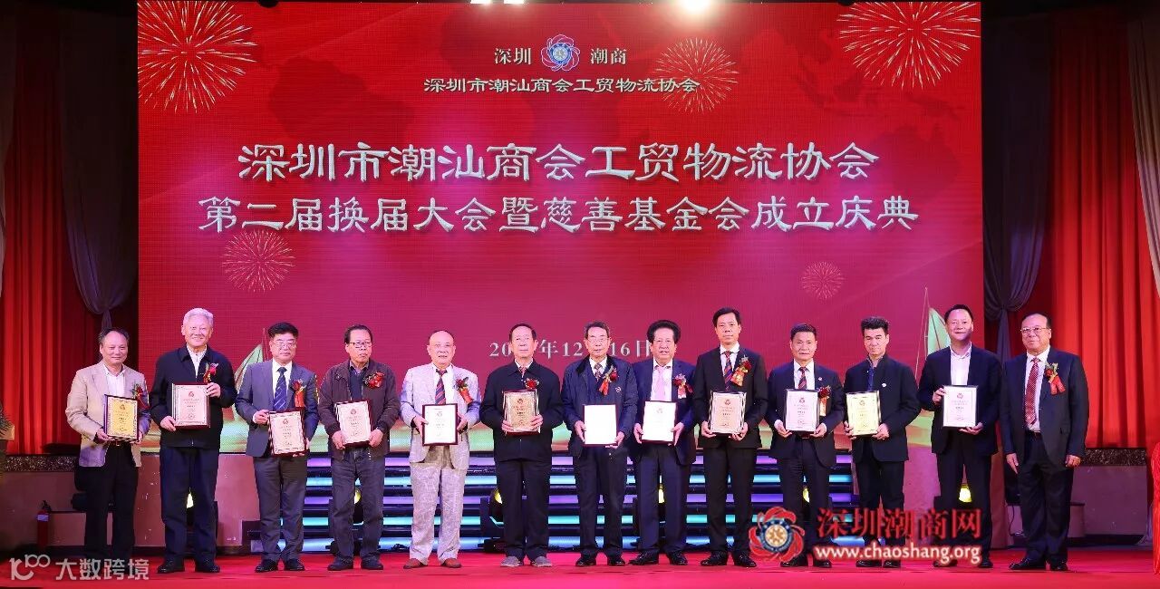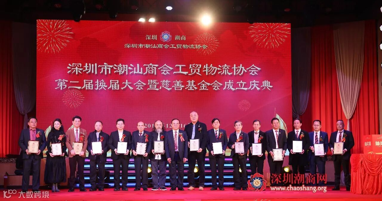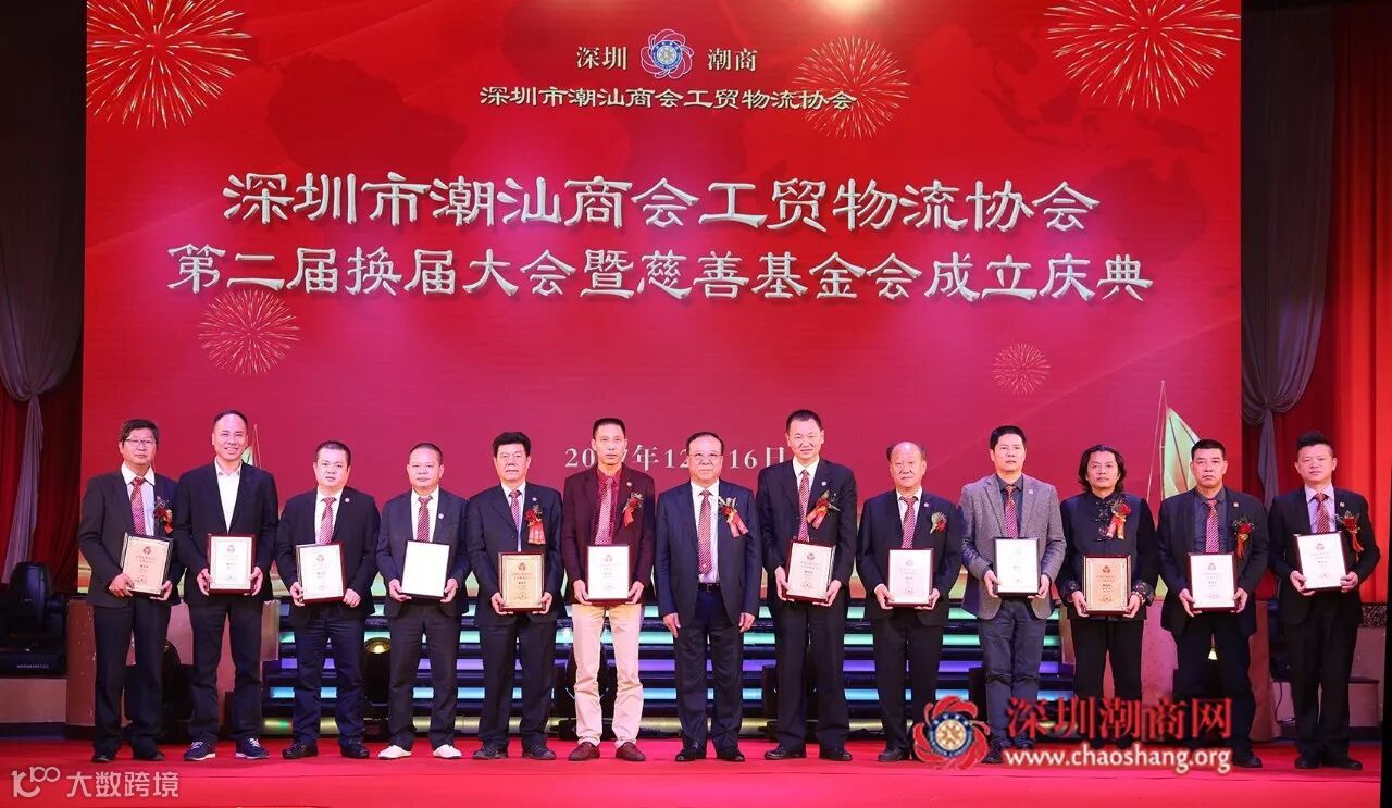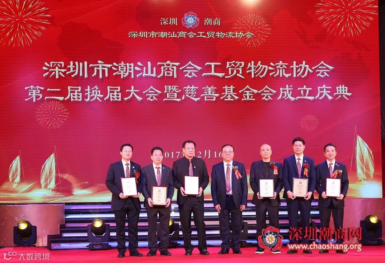 2017年12月16日下午,深圳市潮汕商会工贸物流协会第二届换届大会暨慈善基金会成立庆典在龙岗平湖东海渔港大酒楼隆重举行。广东省政协原副主席、我会荣誉会长李统书,深圳市人大原常务副主任、我会荣誉会长庄礼祥,深圳市政协原副主席、我会荣誉会长姚欣耀,深圳市政协原副主席、我会荣誉会长余晖鸿,深圳市人大原副主任、我会荣誉会长李友烈,深圳市潮人海外经济促进会永远名誉会长、我会荣誉会长黄国祥,龙岗区政府副区长黄惠波,深圳市龙岗区平湖街道办书记张志华,深圳市龙岗区平湖街道办经科办主任王寿华,平湖街道办副主任钟永胜以及政府部门有关领导、深圳潮属社团、兄弟社团代表、商会会员、新闻媒体等欢聚一堂,共叙乡谊,共商善事。大会选举产生深圳市潮汕商会工贸物流协会第二届理事会和领导班子,第一届会长佘桂锡连任会长。
