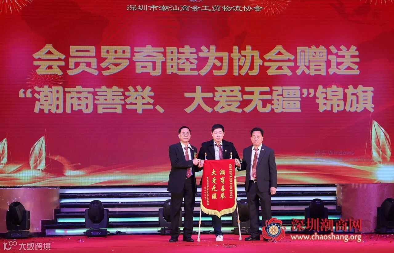 会员罗奇睦向协会赠送“潮商善举、大爱无疆”感谢锦旗