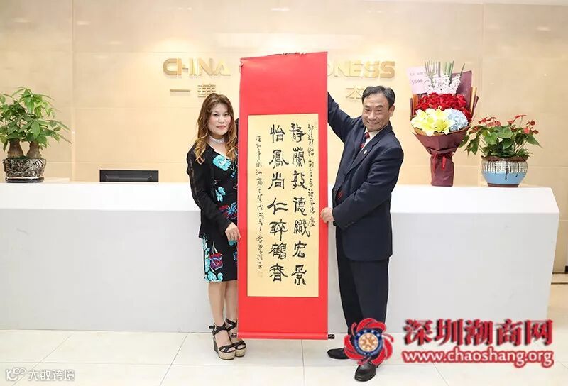 走访期间,黄梓琪秘书长向邹静怡副会长送上生日鲜花和书法作品。书法内容是:“静兰敦德织宏景,怡凤尚仁醉鹤春”。