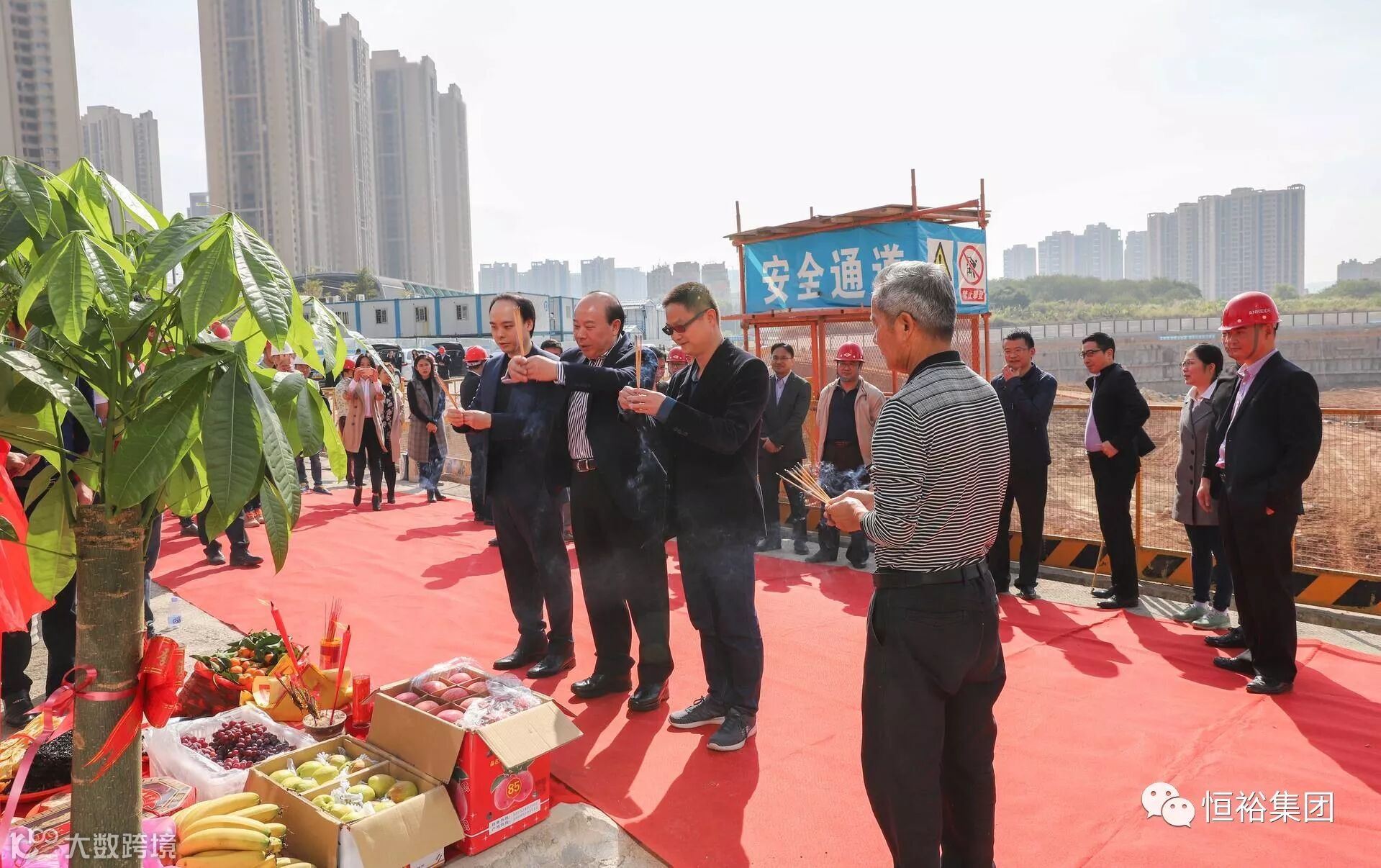 11点整,恒裕集团董事局主席龚俊龙、董事长龚海鹏率现场所有同事进行烧香祝拜,祈愿龙华中心区项目开工大吉、顺风顺水、项目大卖。随后,礼炮响彻天际,威赫浩气震乾坤。
