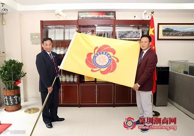 黄梓琪秘书长代表商会向黄明树副会长授会旗