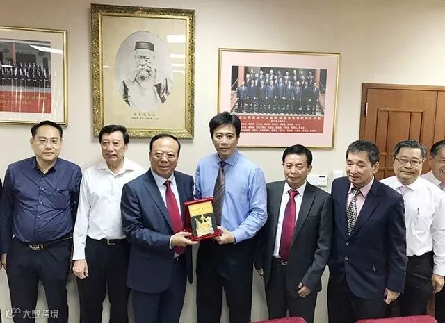 佘桂锡常务副会长访问新加坡潮州八邑会馆和蔡纪典会长互赠纪念品