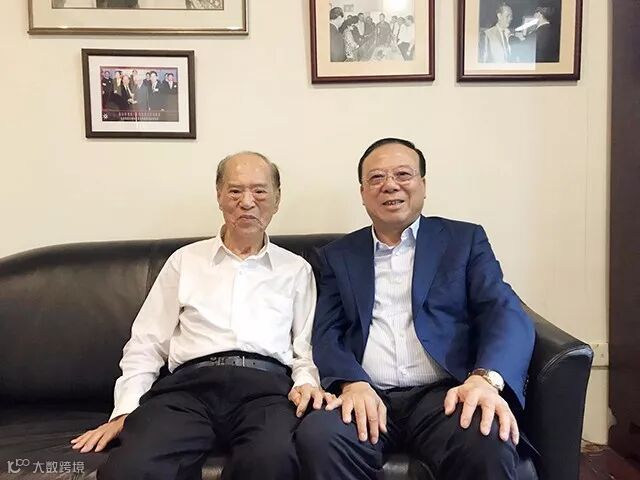 佘桂锡常务副会长(右)访问新加坡著名侨领翁烈强老先生(左),并合影留念