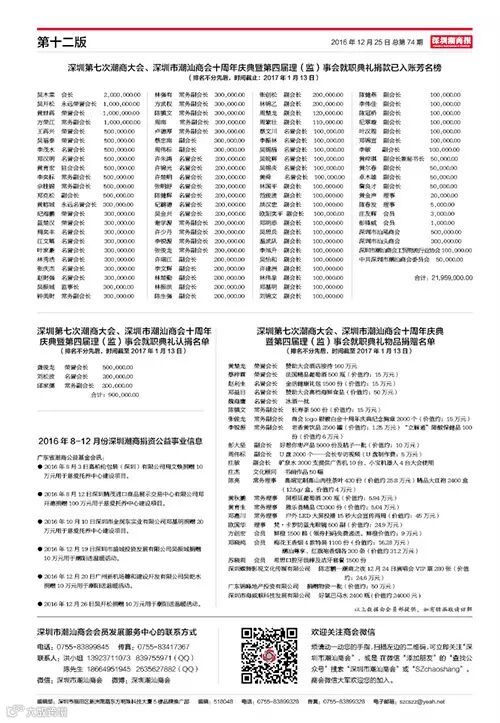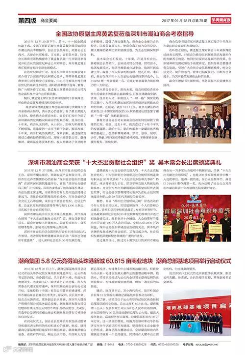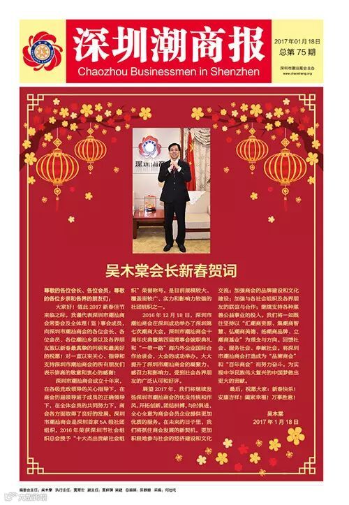 尊敬的各位商会会员:大家新年好!《深圳潮商报》第74(大会专刊)和75期(贺年专刊)已以平邮方式邮寄给大家,请大家留意查收。如因地址更改或其他原因未能收到的,请及时与会员部联系,电话:0755-83899845/82857021,谢谢大家!