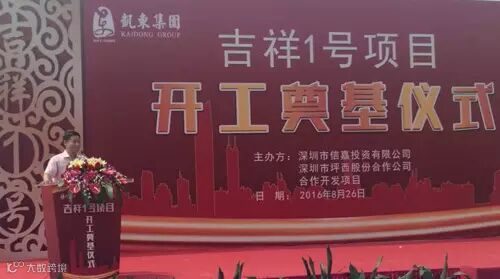 深圳市潮汕商会常务副会长、深圳市凯东集团有限公司董事长方武权在奠基仪式上发表致辞,对参加奠基仪式的领导嘉宾表示热烈欢迎和衷心感谢,对“吉祥1号”项目未来的发展寄予厚望。
