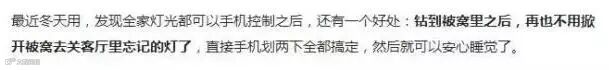 有的时候我们不是不想关灯或者其他电器,只是可能我已经上床或者外出了。这个时候,有了语音助手,只需要一句话就能解决问题。或者在外面的时候,通过网络就能查看到家里照明系统的状态,轻轻一按就关掉忘了的灯。