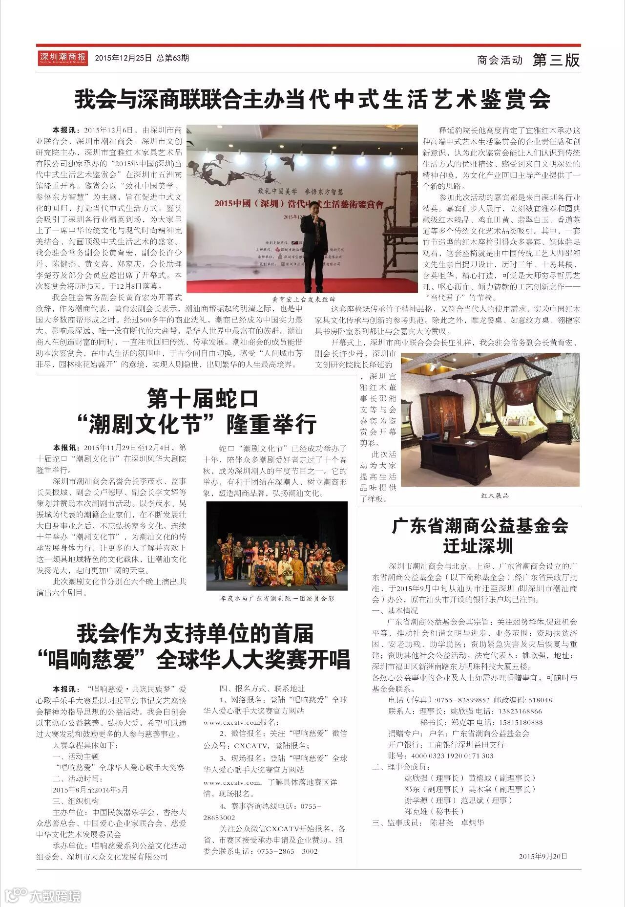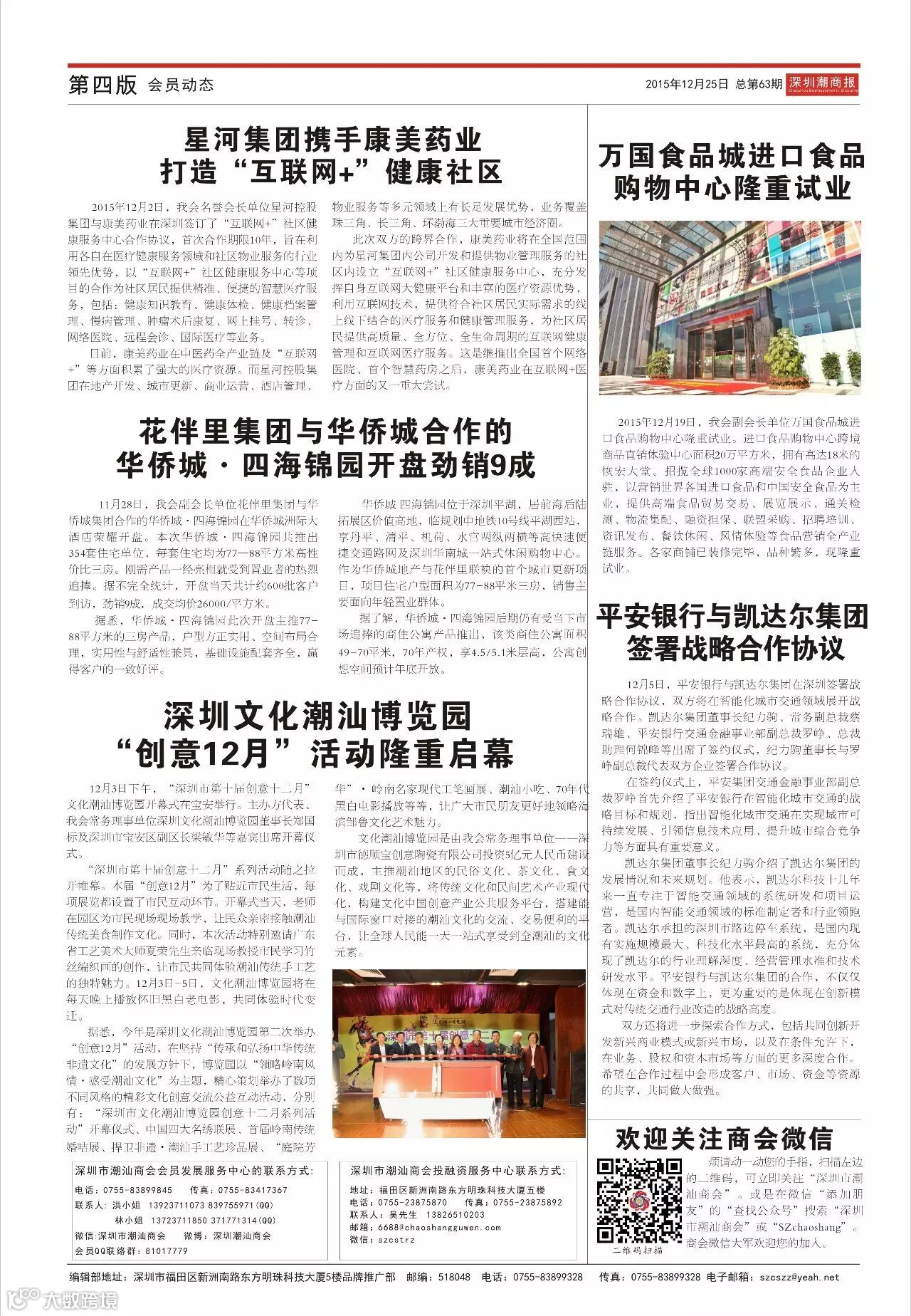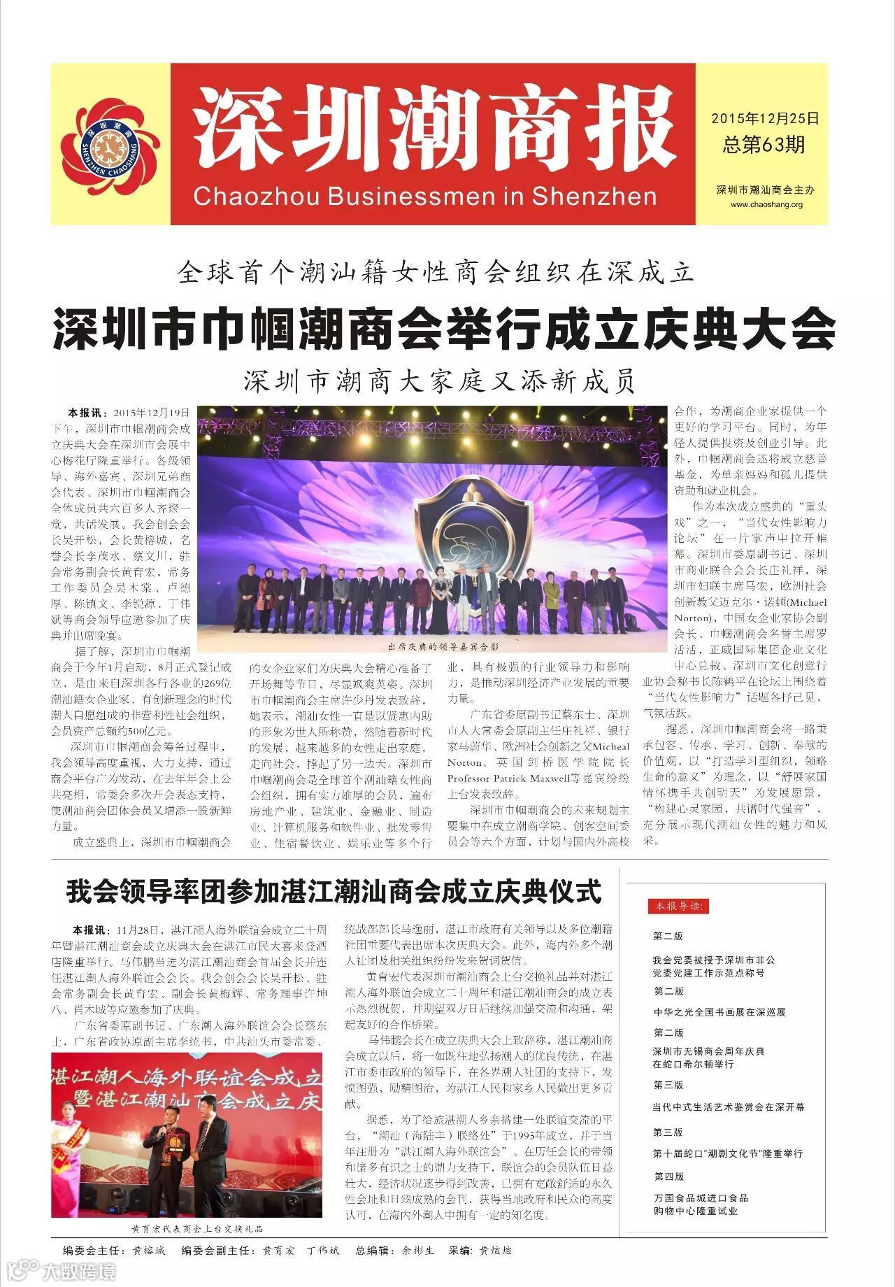 导读:尊敬的各位商会成员:《深圳潮商报》第63期已邮寄(平邮),请您查收。如您因地址更改或其他原因未能收到,请与会员部联系83899845、82857021。