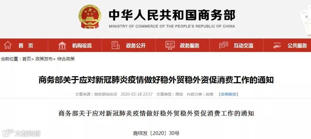 2月18日,商务部印发《关于应对新冠肺炎疫情做好稳外贸稳外资促消费工作的通知》。