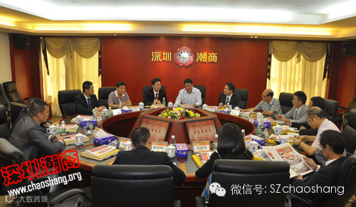 2014年10月16日上午,东莞市揭阳商会会长林郁新,常务副会长兼秘书长吴少和,监事长林焕升,会长助理胡贵平,副会长陈伟胜、林科成、李晓通等一行到我会联谊座谈。深圳市潮汕商会会长黄榕城,驻会常务副会长黄育宏,常务副会长卓振波,副会长兼党委书记邓东,副会长兼秘书长丁伟斌,会长助理何奕鹏、郑家庆,副秘书长李楚芬、余彬生等出席接待并座谈。