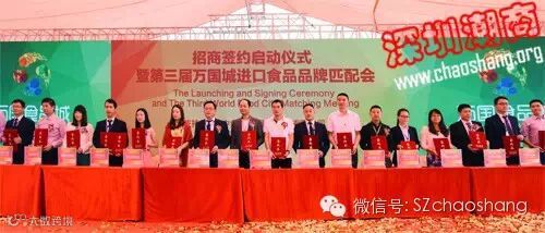 2015年4月26日上午,深圳万国食品博览城(以下简称“万国食品城”)隆重举办招商签约启动仪式暨第三届进口食品品牌匹配会。来自5大洲16个国家驻穗总领事、商务领事,700名嘉宾,150家海内外食品生产厂商,400多家采购商,38家境内外媒体记者齐聚万国食品城,共同见证招商签约启动盛况。
