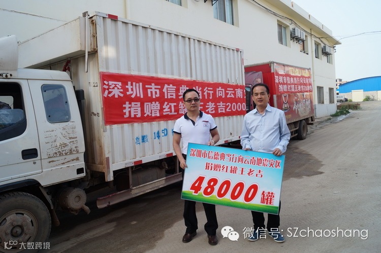 2014年8月3日16时云南鲁甸发生6.5级地震,造成严重伤亡。深圳一德集团旗下的深圳市信德典当行有限公司第一时间启动救灾响应机制,深圳市潮汕商会副会长、一德集团、信德典当行董事长林武雄于8月5日一清早赶赴灾区,捐赠价值十多万人民币的王老吉凉茶2000箱给灾区用于紧急救灾等工作。后续,还将与相关救灾组织联手,开展进一步行动。