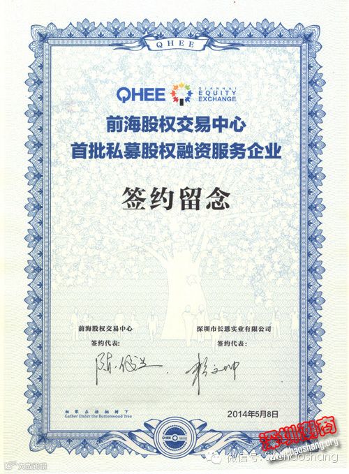 经过半年的筹备和审核,2014年5月8日,我会常务理事赖文坤的深圳市长恩实业有限公司在深圳前海股权中心正式挂牌,成为首批私募股权融资服务企业之一。多个投资公司对长恩实业有限公司的经营理念和产品特点给予了高度的认可和评价。