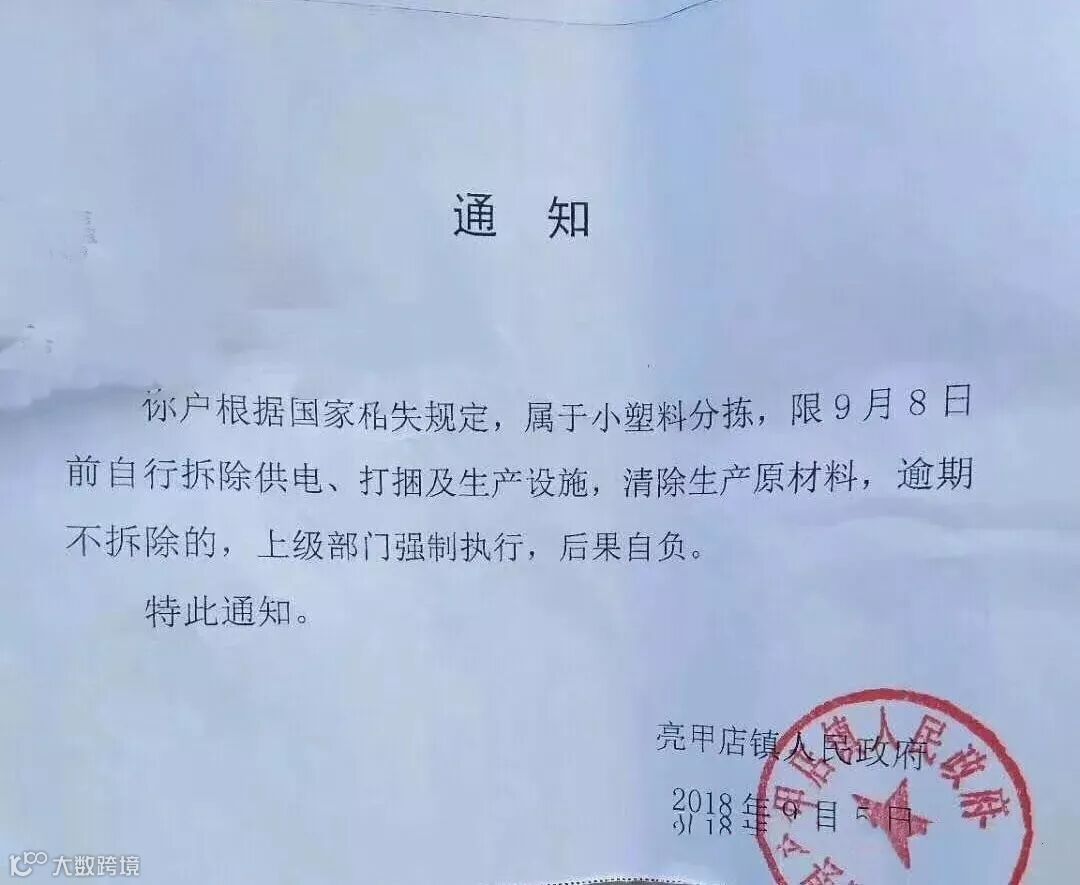 独立塑料分拣企业,一律列入关停取缔类“散乱污”企业,按照“两断三清”标准予以关停取缔。