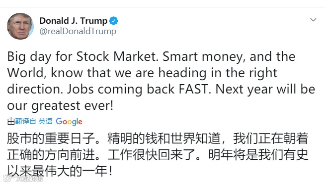 特朗普:今天是股市的大日子