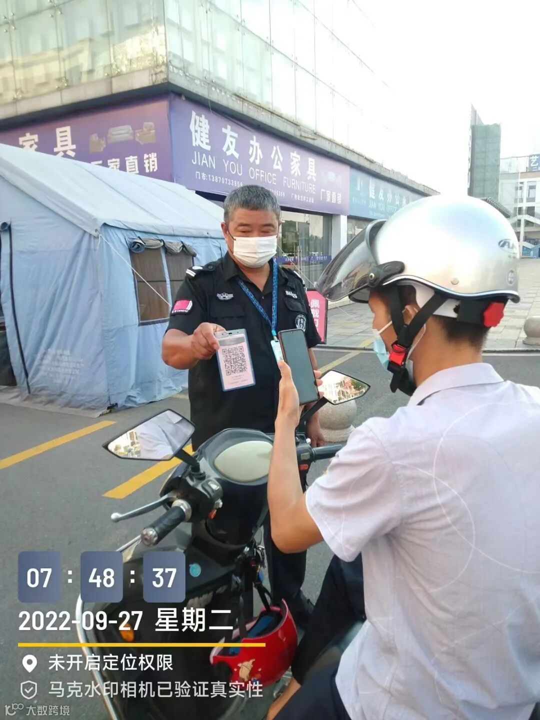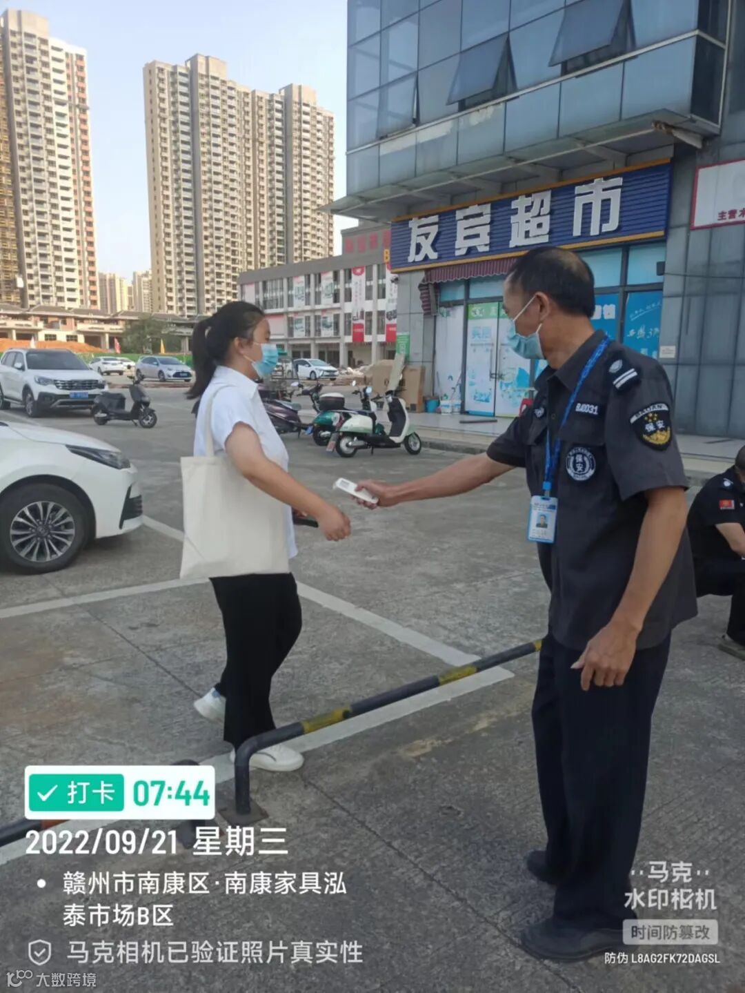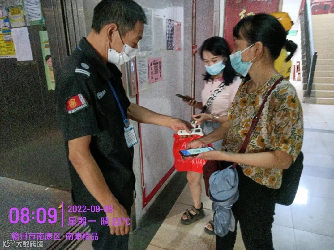 保安部每天要对市场进出人流进行扫码、测温、查验行程码,确保市场无疫情人员流入。同时还要对市场内秩序进行维护,保障市场安全。