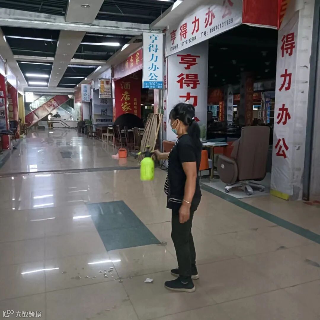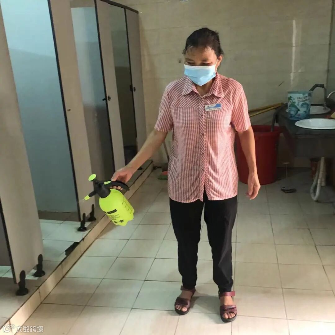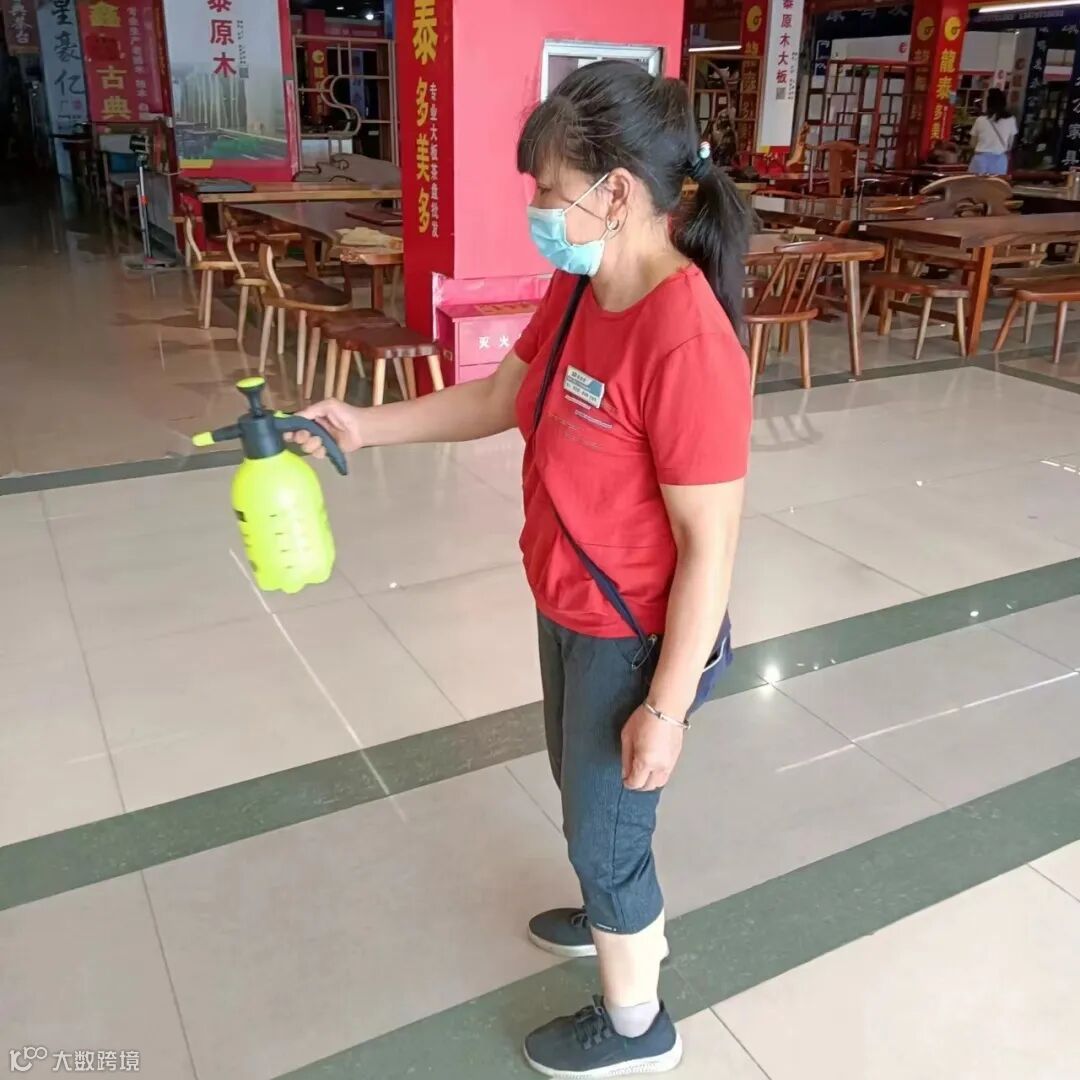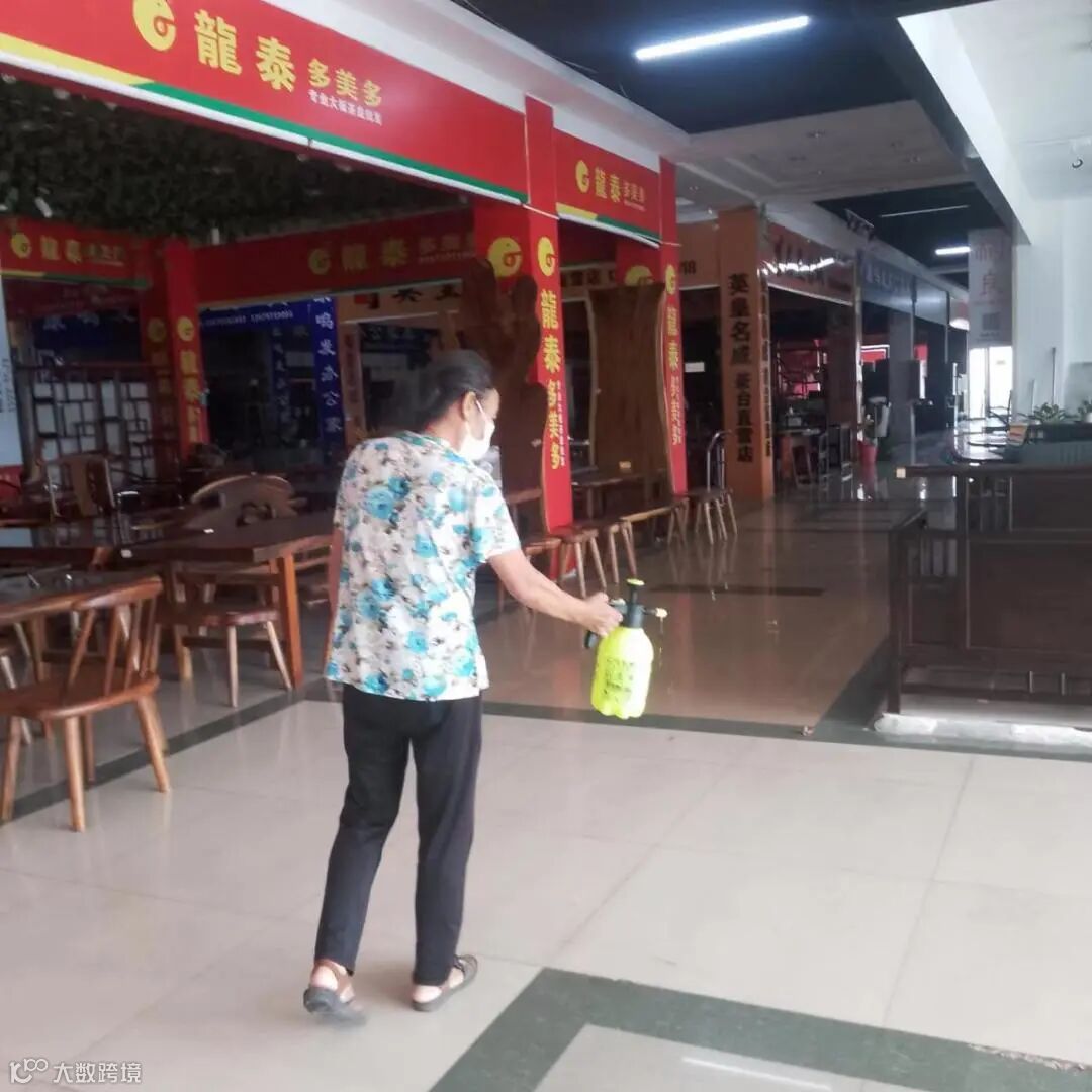 保洁阿姨日常对市场进行清洁,公共区域进行消毒,保障市场有一个干净卫生的营商环境。