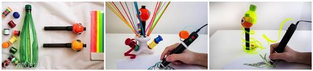 3D 打印机所用耗材价格高昂,Daniel Edwards 为此发明了一支3D打印笔,它可以使用日常的塑料垃圾,如饮料瓶为耗材。Edwards 希望以此为基础,发展用废弃塑料为耗材的 3D 打印机。