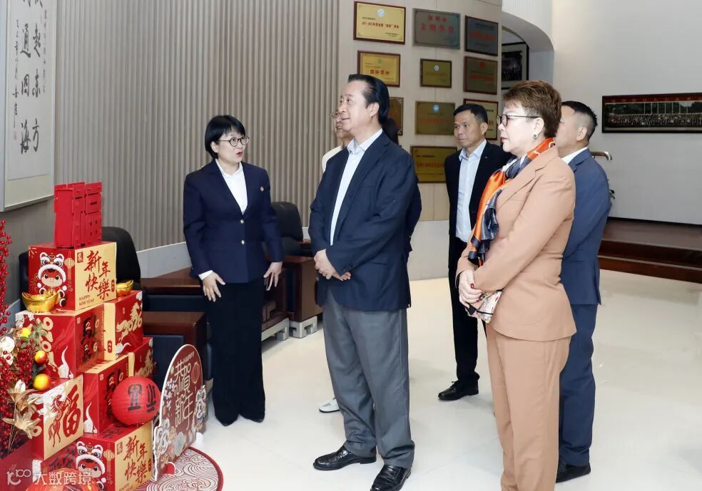 在参观环节中,邓振龙会长一行来到我会的文化展示区、党建墙等区域,了解我会在凝聚潮商力量、服务会员企业、推动经贸合作及投身公益事业等方面的成果,并对商会的规范化运作、品牌影响力给予高度评价。