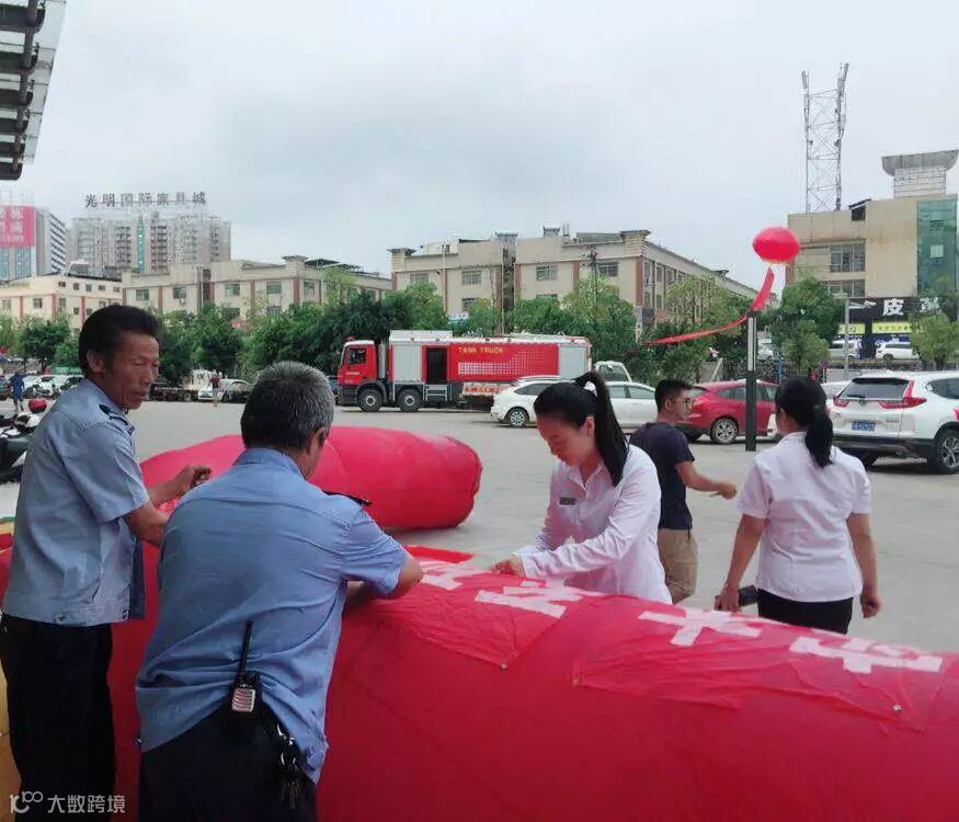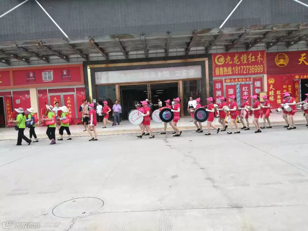 仪仗队敲锣打鼓环绕泓泰家具市场