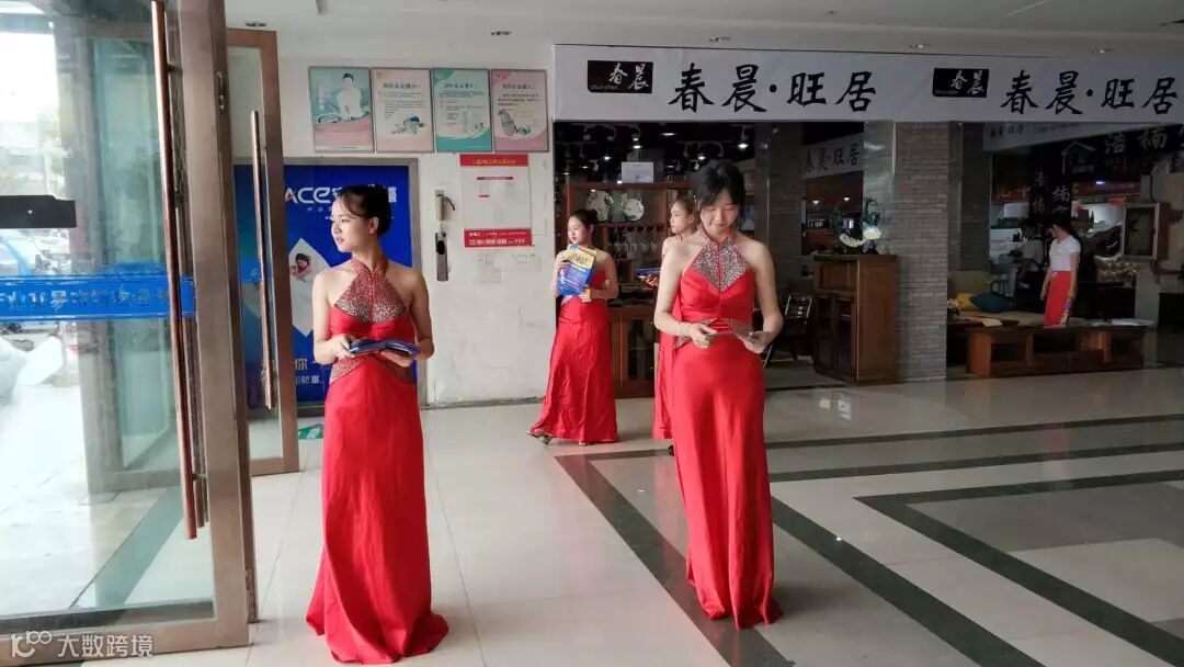 礼仪小姐早已准备好,站在市场各区大门口,喜迎四海家具经销商商。