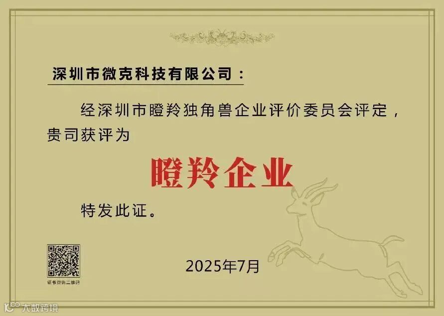 “瞪羚企业”是指已经跨越创业期,以新技术、新产业、新业态、新模式为支撑稳步进入高成长期,综合效益突出、行业影响力大、社会诚信度高、示范带动性强,在引领中小企业转型升级和促进民营经济发展中作用明显、成效显著的优秀标杆企业。微克科技凭借“技术驱动增长”的核心战略,完美契合瞪羚企业的评选标准。