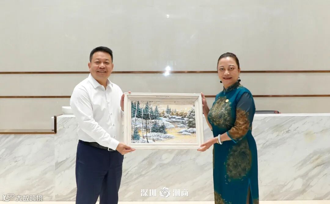 李少佳会长对刘海景会长、许建洲监事长及深圳市潮汕商会的热情接待表示衷心感谢,并对刘海景先生当选商会新一届会长、许建洲先生当选新一届监事长表示热烈的祝贺。李会长介绍了俄罗斯潮汕总商会的发展现状以及在俄潮商的工作生活情况。她表示,商会的成立就是为在俄潮商打造一个温暖的“娘家”,她热忱欢迎乡亲们常来做客,商会将竭诚为有意赴俄进行经贸投资、项目合作落地的企业提供服务和指引,帮助大家规避风险。