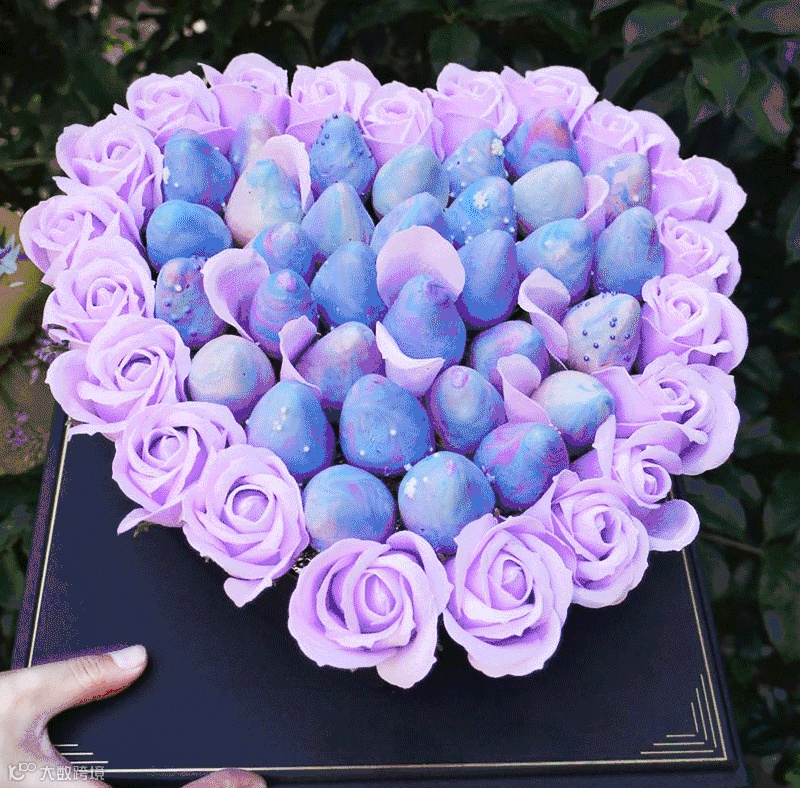 巧莓花,是水果花中最受欢迎的一种,主要由草莓,巧克力搭配鲜花制作而成。一个顶级巧莓花的诞生需要果艺师同时具有烘焙、巧克力制作、插花和艺术设计的知识和技巧。