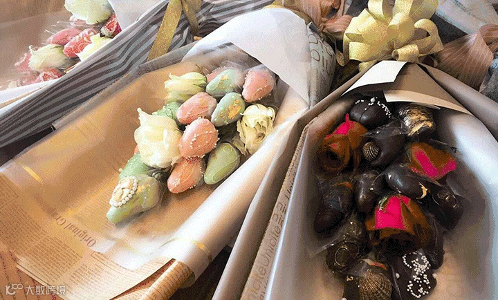 水果花除了具备令人惊喜的外观,还是对味蕾的犒赏。巧克力的香浓美味与鲜果的完美搭配带给人全新的感受和体验。
