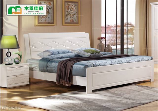 【秒杀爆款】实木简约1.8米白色大床