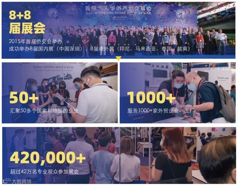 侨交会自2017年开始在东南亚地区举办展会,链接了印尼、泰国、马来、越南等国当地行业和买家资源,同时,侨交会在东盟多国拥有实体采销中心,总面积超过30,000m²,集聚了20W+采购商数据及采购需求;