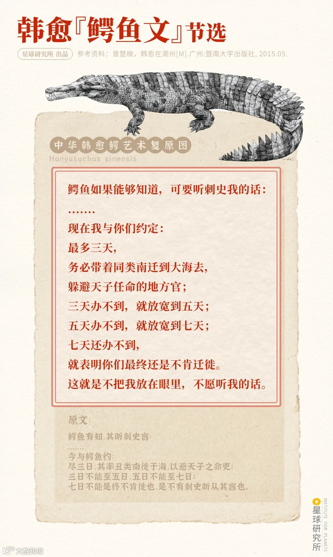 (韩愈《鳄鱼文》节选,中华韩愈鳄艺术复原图由合肥工业大学刘俊授权,制图@阿土/星球研究所)