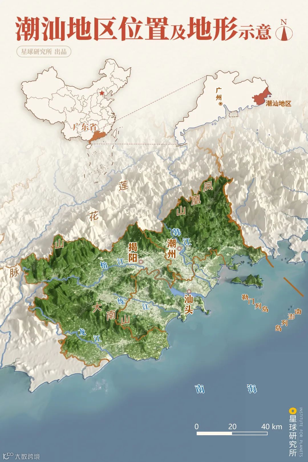 (潮汕地区位置及地形示意,制图@高俪倩/星球研究所)