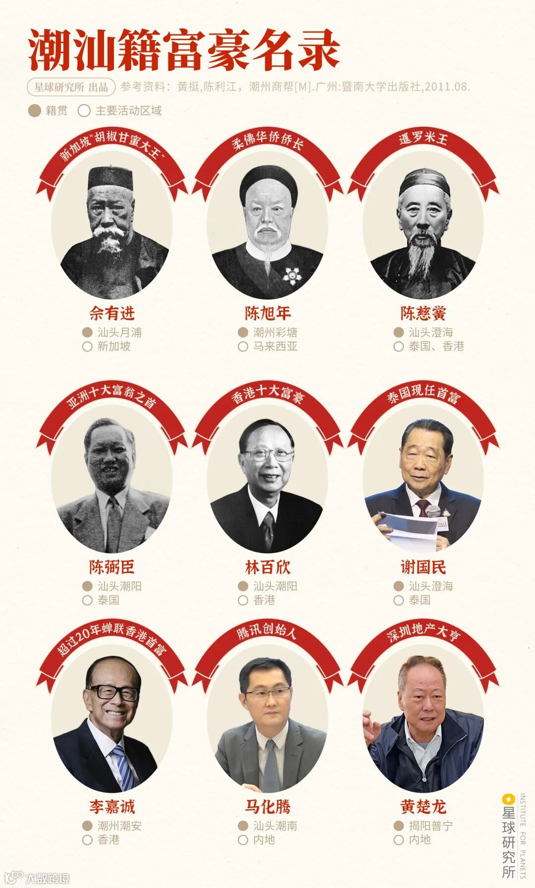 (部分潮汕籍富豪名录,制图@阿土/星球研究所,图片来源@视觉中国&wikimedia commons)