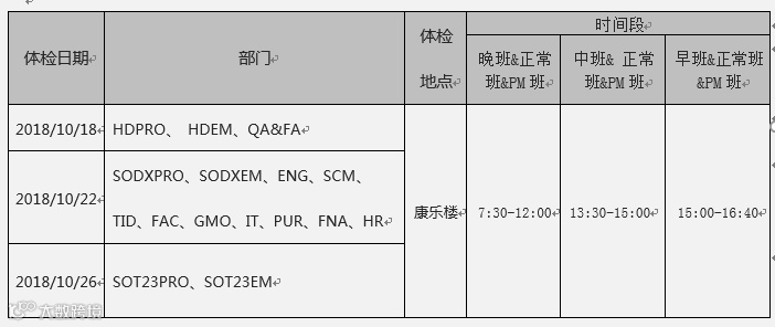 6)体检时请配戴厂牌,体检过程中会进行核对,替代违规者,将按员工手册进行处理