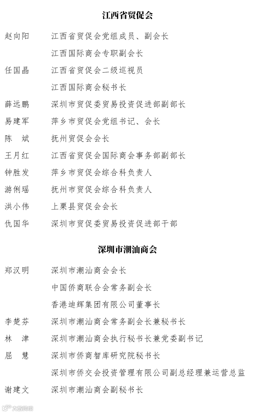 任国晶秘书长对深圳市潮汕商会在会建和党建方面的探索和成效给予了充分肯定。他补充介绍道,江西省贸促会有1900多名会员,19家行业分会,覆盖传统与新兴产业,会员多数都是行业头部企业。他表示,侨交会平台在服务外贸企业出海东南亚有丰富经验,当前东南亚经济蓬勃发展,江西外贸企业也有出海需求,希望后续双方加强探讨合作模式,为江西外贸企业高质量发展提供新路径。