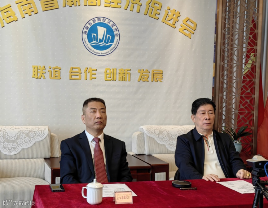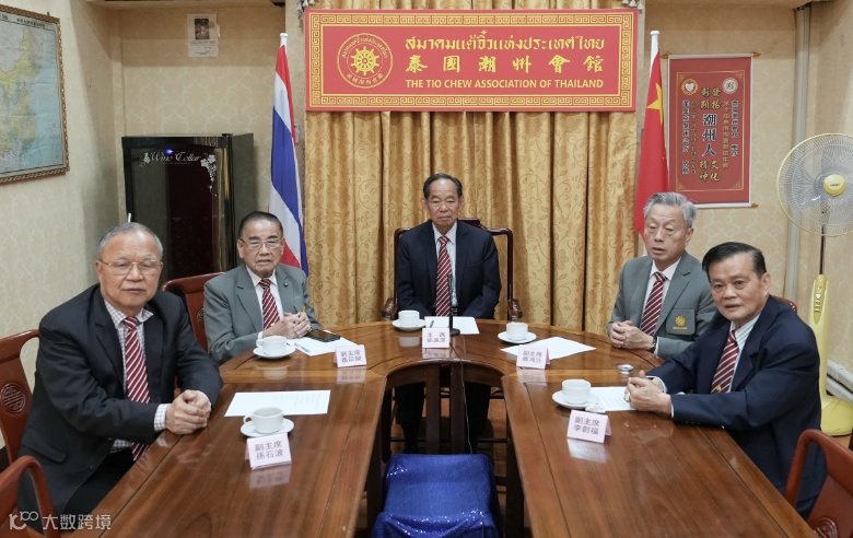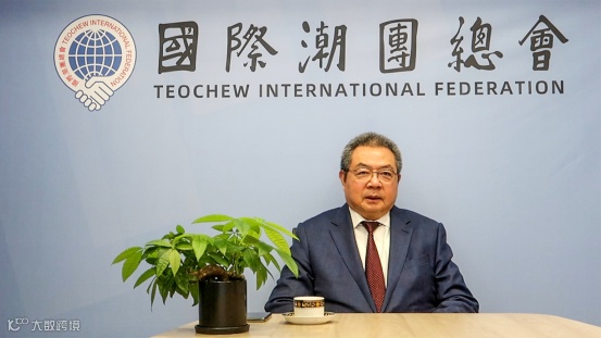 国际潮商经济合作组织会长吴开松(中)、副会长黄育宏(右)、秘书长何奕鹏(左)
