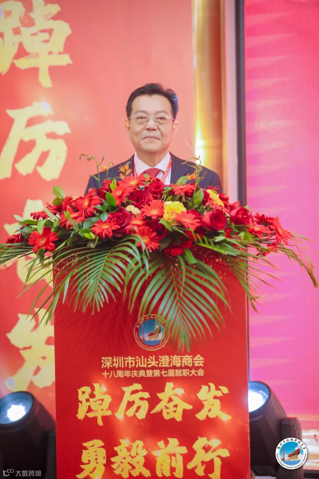 罗育毅名誉会长开场致辞,在庄严、宏亮国歌中揭开庆典大会序幕。首先由中共汕头市澄海区委常委、统战部部长郑奕庭致辞并代表澄海区委区政府赠送商会珍贵礼品《秦牧故里林檎香》,表达家乡政府对深圳市汕头澄海商会祝福和期望。
