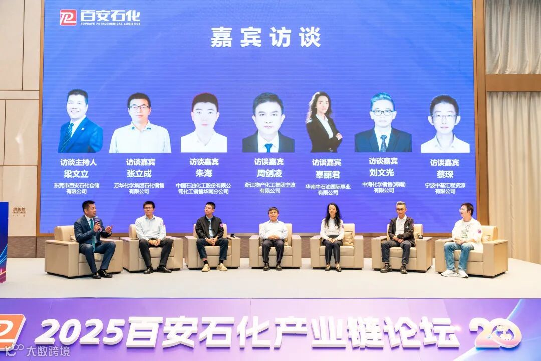 主题演讲环节干货满满,紧随其后的深度访谈更是聚焦行业核心命题,以“产业破局与未来机遇”为主题的访谈由商务及发展总监梁文立先生主持,万华化学集团石化销售有限公司张立成先生,中国石油化工股份有限公司化工销售华南分公司朱海先生,浙江物产化工集团宁波有限公司周剑凌先生,华南中石油国际事业有限公司辜丽君女士,中海化学销售(海南)有限公司刘文光先生,宁波中基汇程资源有限公司蔡琛先生参与访谈,他们结合自身实战经验,复盘企业应对市场波动、化解成本压力的有效策略,同时前瞻行业未来发展走向,现场交流热烈,思想不断进行碰撞。