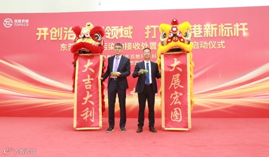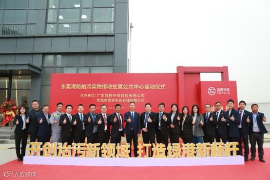广东省交通运输厅港口管理处副处长叶智、市交通运输局副局长吴柏安、市生态环境局副局长詹志薇、东莞海事局副局长肖国豪、沙田镇人大主席卢泽新、沙田镇党委副书记陈武勇,百安石化以及百胜环保董事长梁志斌,百胜环保总经理谢维增共同启动了项目。
